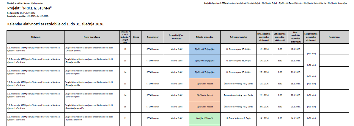 Tijekom 36 mjeseci, od 12.3.2025 do 12.3.2028, provedbe planirano je održati 1170 radionica te u program uključiti najmanje 900 djece s područja Osječko-baranjske županije.